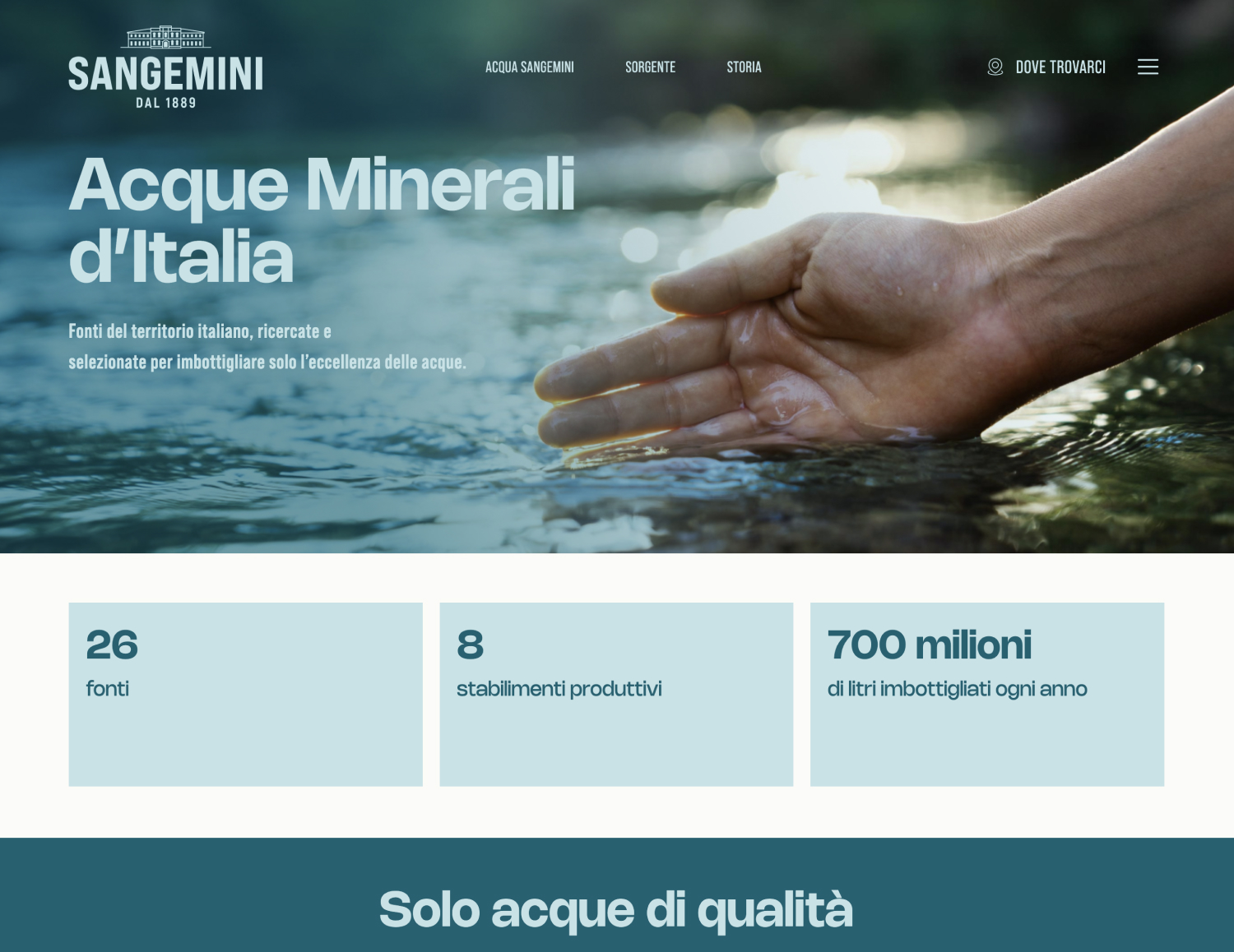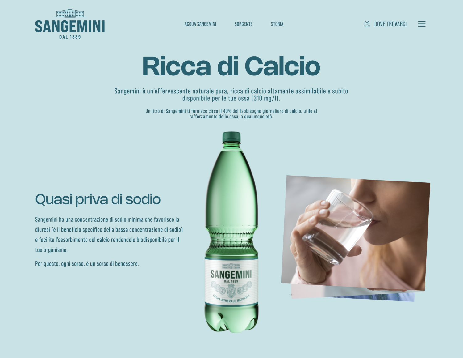 Il nuovo sito di Sangemini offre un’esperienza visiva e contenutistica coinvolgente, con una user experience che dà valore allo storytelling e accompagna l’utente – scroll dopo scroll – alla scoperta dei benefici unici di questa acqua.