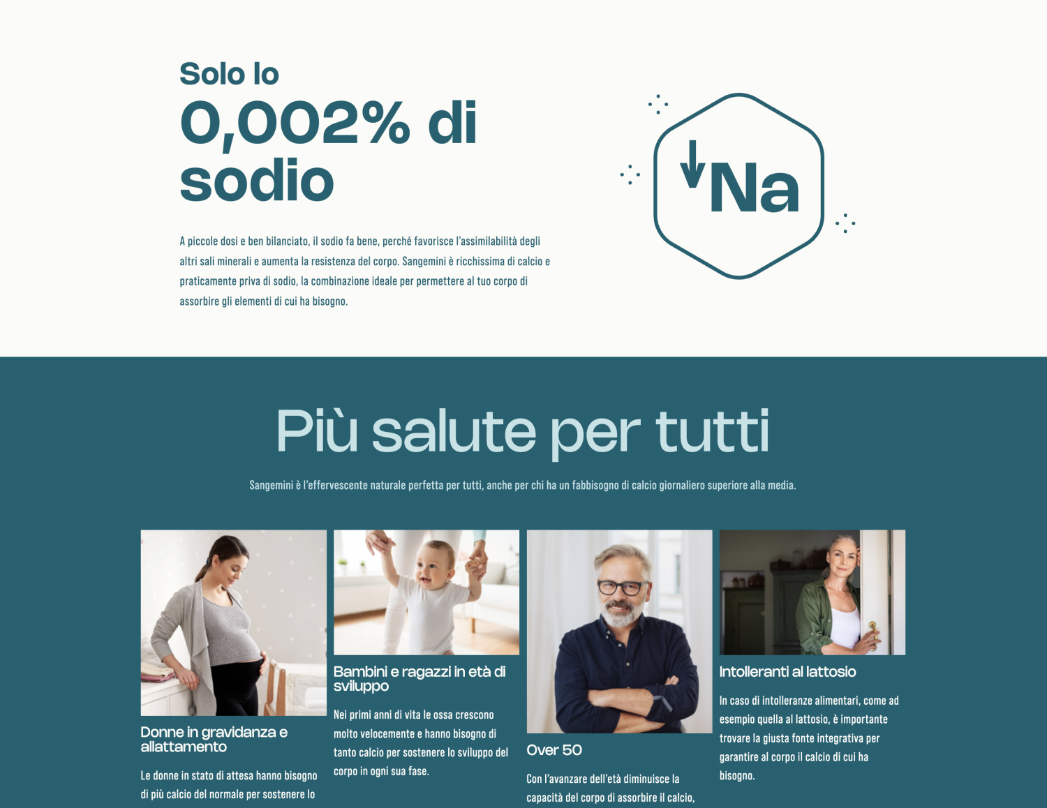Rafforzare la UVP di Sangemini creando un nuovo hub digitale con un design coerente e distintivo, capace di ridare valore alla forte e storica identità del brand.